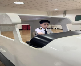 航空服务实训中心位于航宇馆106室,2020年9月建成并投入使用,占地面积440余平方米,设备总值400余万元。中心拥有空客A330飞机双通道模拟舱一架,全长16.81米、宽5.64米、高2.7米,按空客A330飞机1:1对应复制带机身舱段和驾驶舱的模拟设备,有效还原了真实的客舱,可用于学员熟悉飞机客舱布局、机载设备操作、餐饮服务、应急处置等专业的实践教学,是目前国内高校航空服务艺术与管理专业最先进的教学设施设备。